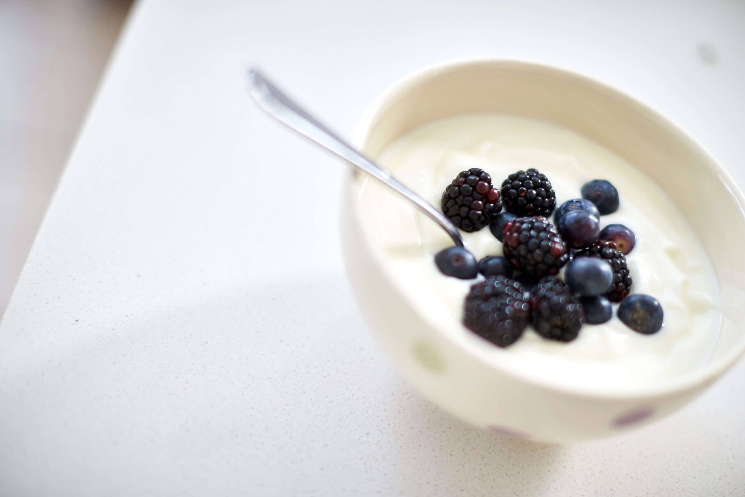 - High protein yoghurt with a spoonful of quality muesli and added berries.